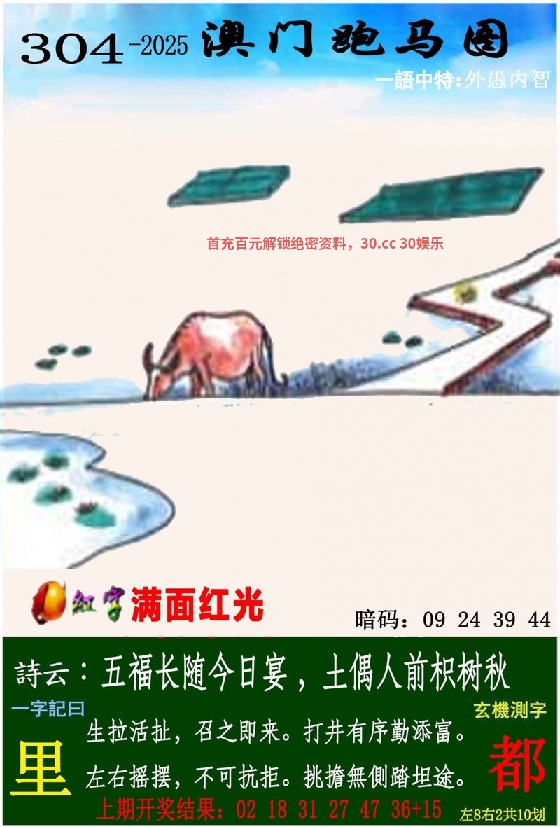 304期一字記曰:【里】 生拉活扯,召之即来,打井有序勤添富。左右摇摆,不可抗拒,挑担无侧踏坦途。 玄机测字《都》 解:土偶人前枳树秋:人前解前肖蛇兔龙牛虎鼠。 综合两波:红波+蓝波 |